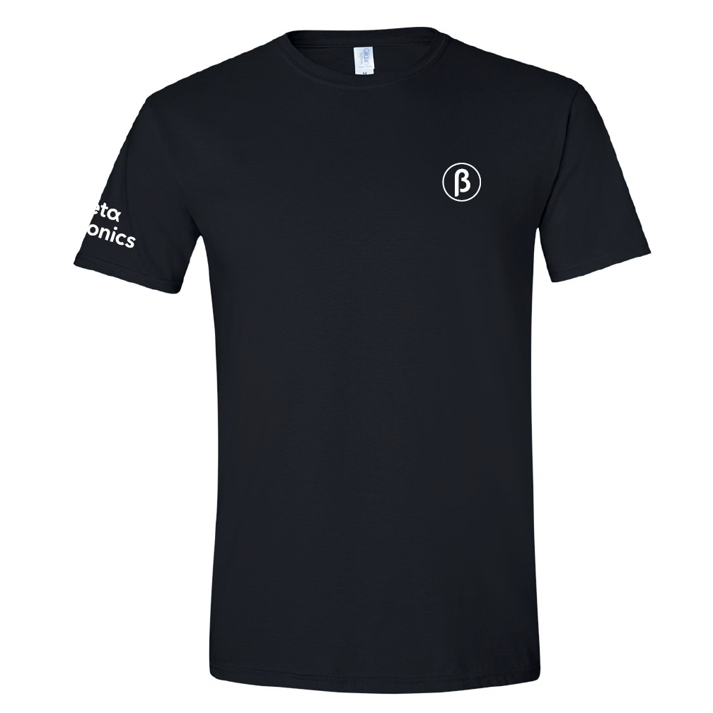 Black Crewneck T-Shirt – with B logo on front and Beta Bionics logo on sleeve.