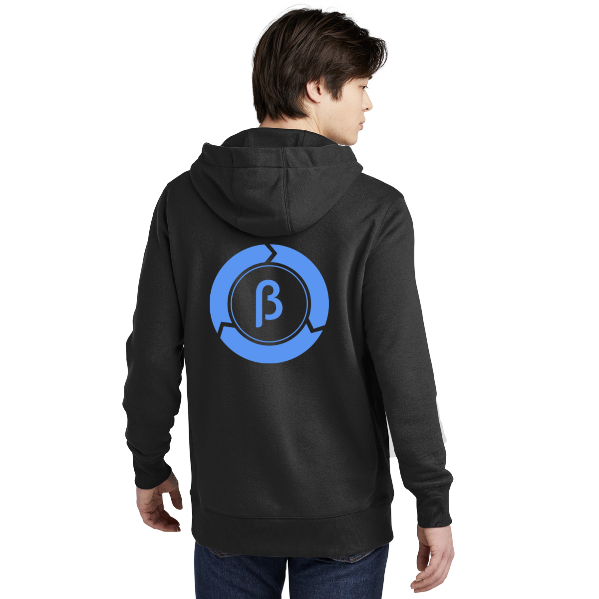 New Era hoodie with embroidered New Era flag logo on sleeve, Beta Bionic logo imprint on chest, and Circle B logo imprint on back