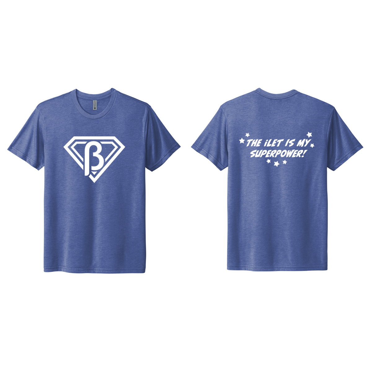 Blue Men’s Tri-Blend Tee with Beta Bionics “Superpower” design (front emblem, back text)